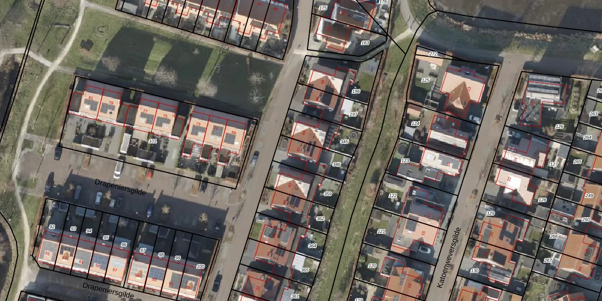Het perceel waarop Drapeniersgilde 42 staat heeft een oppervlakte van 215 m². Dit is een middelgroot perceel. De perceeloppervlakte wordt geregistreerd door het Kadaster. Gedetailleerde informatie over de maten van dit perceel kunt u vinden in het rapport Kadastrale kaart met maatvoering van Drapeniersgilde 42.