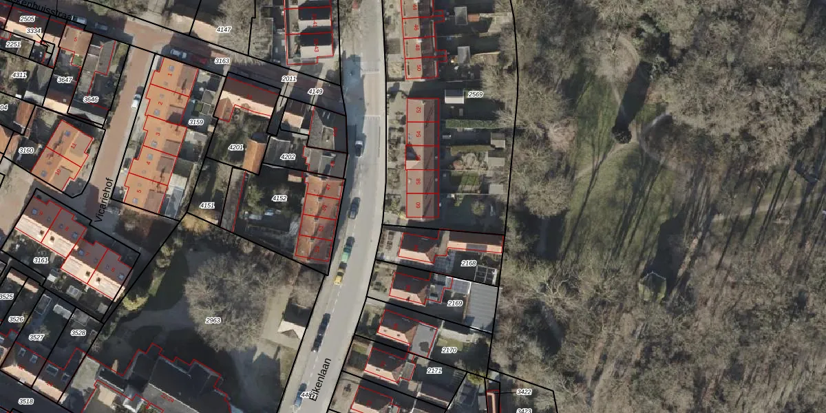 Het perceel waarop Eikenlaan 60 staat heeft een oppervlakte van 2113 m². Dit is een zeer groot perceel. De perceeloppervlakte wordt geregistreerd door het Kadaster. Gedetailleerde informatie over de maten van dit perceel kunt u vinden in het rapport Kadastrale kaart met maatvoering van Eikenlaan 60.