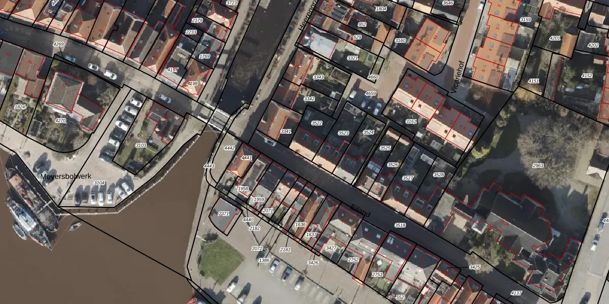 Het perceel waarop Eiland 2 staat heeft een oppervlakte van 155 m². Dit is een middelgroot perceel. De perceeloppervlakte wordt geregistreerd door het Kadaster. Gedetailleerde informatie over de maten van dit perceel kunt u vinden in het rapport Kadastrale kaart met maatvoering van Eiland 2.