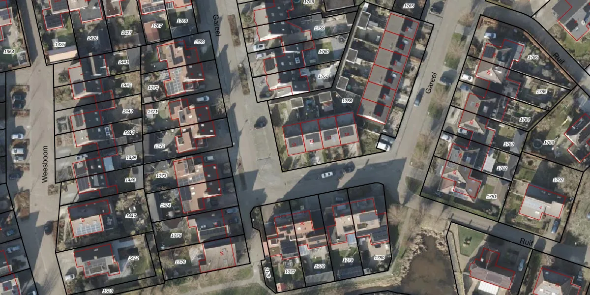 Het perceel waarop Gareel 13 staat heeft een oppervlakte van 1704 m². Dit is een zeer groot perceel. De perceeloppervlakte wordt geregistreerd door het Kadaster. Gedetailleerde informatie over de maten van dit perceel kunt u vinden in het rapport Kadastrale kaart met maatvoering van Gareel 13.