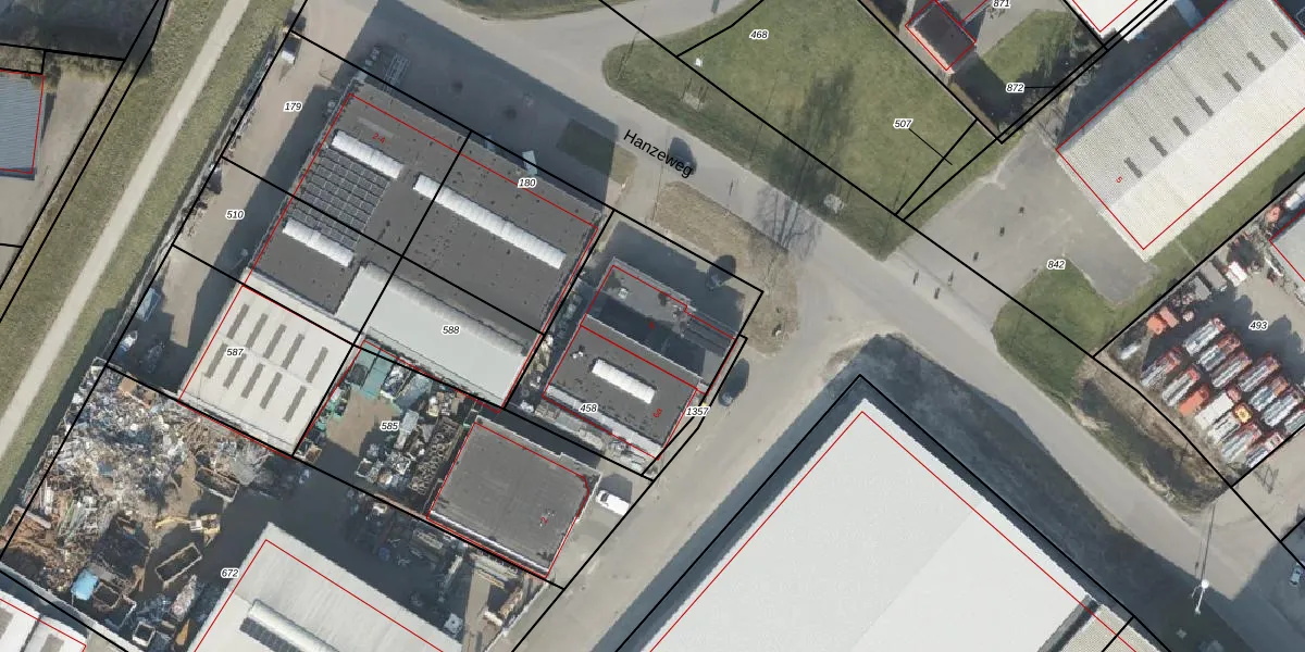 Het perceel waarop Hanzeweg 6 staat heeft een oppervlakte van 875 m². Dit is een groot perceel. De perceeloppervlakte wordt geregistreerd door het Kadaster. Gedetailleerde informatie over de maten van dit perceel kunt u vinden in het rapport Kadastrale kaart met maatvoering van Hanzeweg 6.