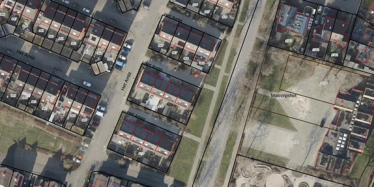 Het perceel waarop Het Ambt 15 staat heeft een oppervlakte van 725 m². Dit is een groot perceel. De perceeloppervlakte wordt geregistreerd door het Kadaster. Gedetailleerde informatie over de maten van dit perceel kunt u vinden in het rapport Kadastrale kaart met maatvoering van Het Ambt 15.