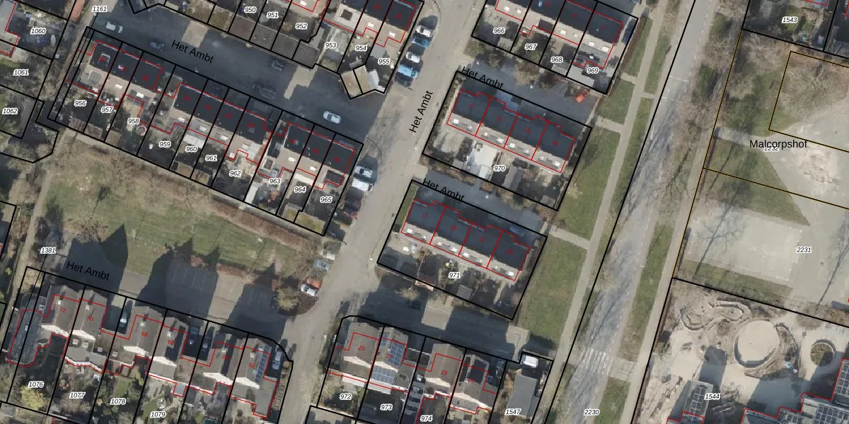 Het perceel waarop Het Ambt 17 staat heeft een oppervlakte van 725 m². Dit is een groot perceel. De perceeloppervlakte wordt geregistreerd door het Kadaster. Gedetailleerde informatie over de maten van dit perceel kunt u vinden in het rapport Kadastrale kaart met maatvoering van Het Ambt 17.