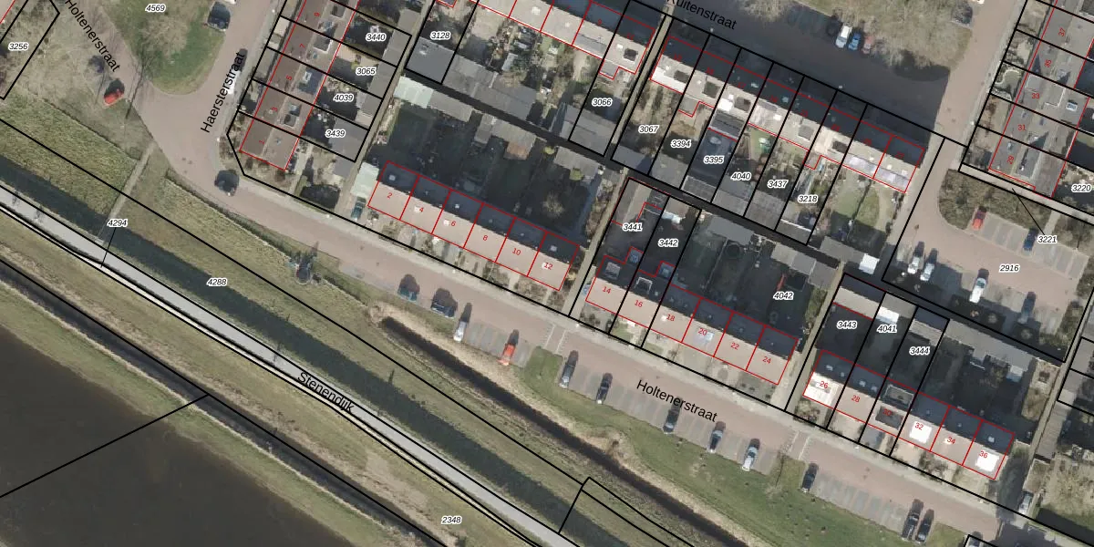 Holtenerstraat 12 is gelegen op kadastraal perceel HST00A4042. Deze kadastrale aanduiding is uniek en wordt gebruikt door het Kadaster om eigendomsrechten en andere zakelijke rechten vast te leggen. Het perceel maakt onderdeel uit van de kadastrale gemeente Hasselt.