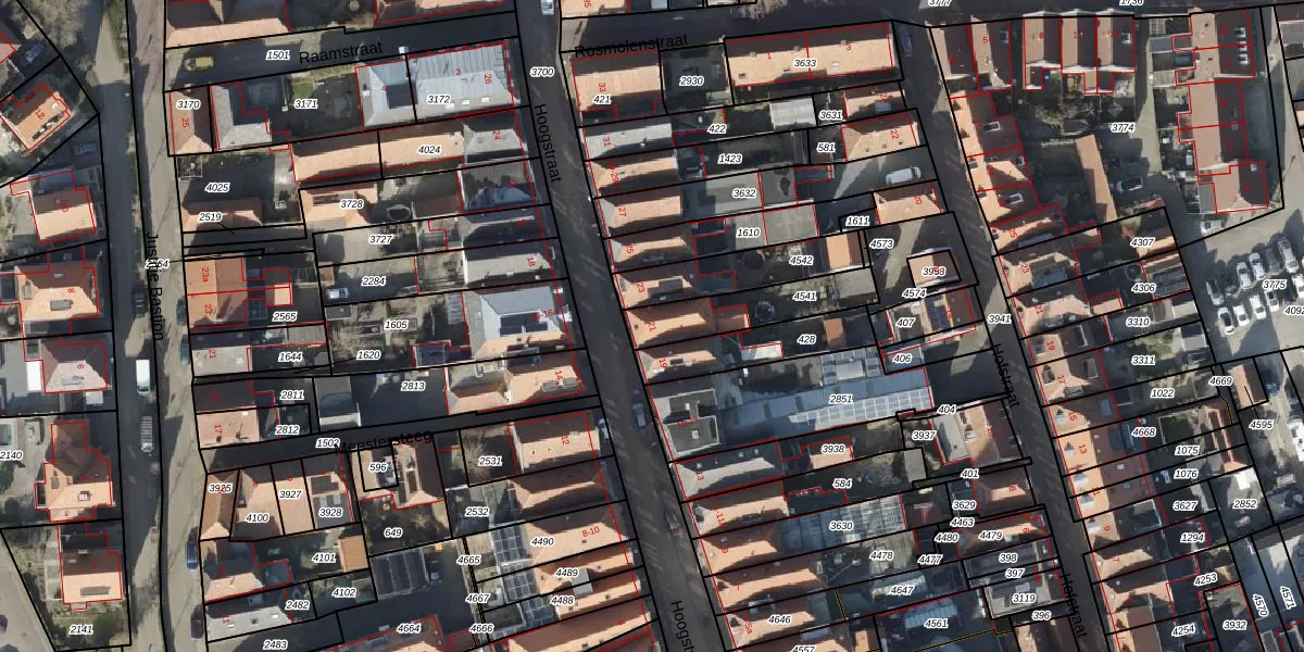 Gebruik de zoekbalk of klik op een perceel voor informatie over de adressen binnen dit perceel.