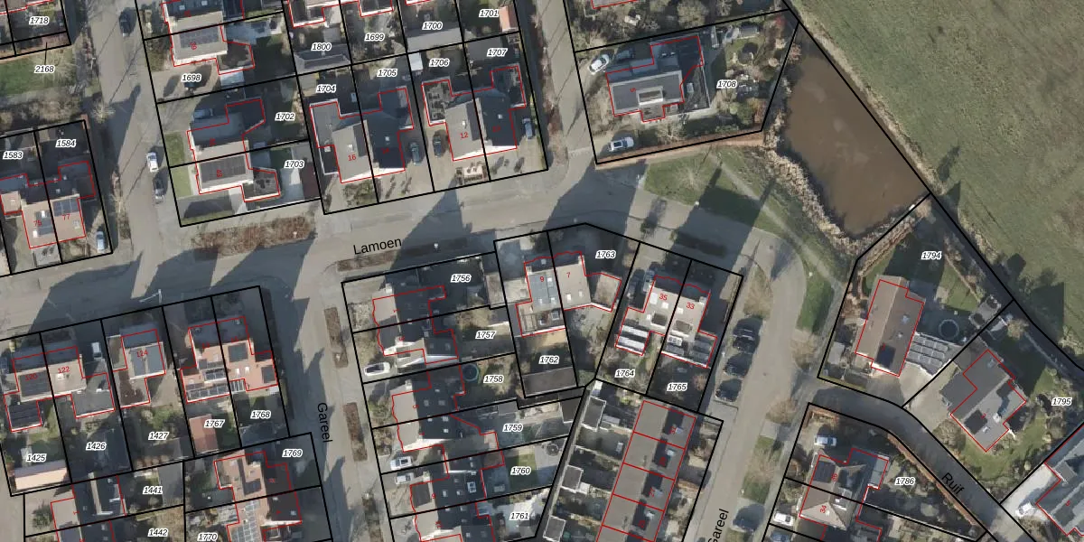 Het perceel waarop Lamoen 9 staat heeft een oppervlakte van 294 m². Dit is een middelgroot perceel. De perceeloppervlakte wordt geregistreerd door het Kadaster. Gedetailleerde informatie over de maten van dit perceel kunt u vinden in het rapport Kadastrale kaart met maatvoering van Lamoen 9.