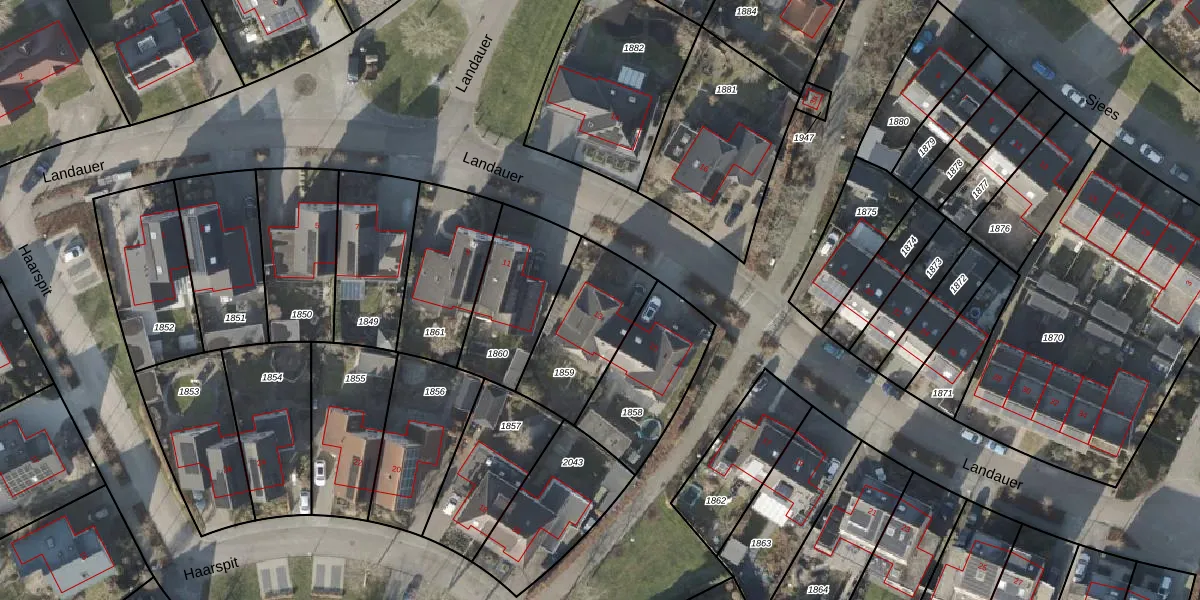 Het perceel waarop Landauer 13 staat heeft een oppervlakte van 364 m². Dit is een groot perceel. De perceeloppervlakte wordt geregistreerd door het Kadaster. Gedetailleerde informatie over de maten van dit perceel kunt u vinden in het rapport Kadastrale kaart met maatvoering van Landauer 13.