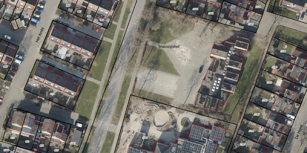 Het perceel waarop Malcorpshof 1 staat heeft een oppervlakte van 5,7 ha. Dit is een zeer groot perceel. De perceeloppervlakte wordt geregistreerd door het Kadaster. Gedetailleerde informatie over de maten van dit perceel kunt u vinden in het rapport Kadastrale kaart met maatvoering van Malcorpshof 1.