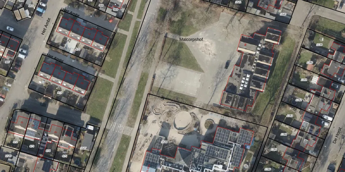 Het perceel waarop Malcorpshof 21 staat heeft een oppervlakte van 5,7 ha. Dit is een zeer groot perceel. De perceeloppervlakte wordt geregistreerd door het Kadaster. Gedetailleerde informatie over de maten van dit perceel kunt u vinden in het rapport Kadastrale kaart met maatvoering van Malcorpshof 21.
