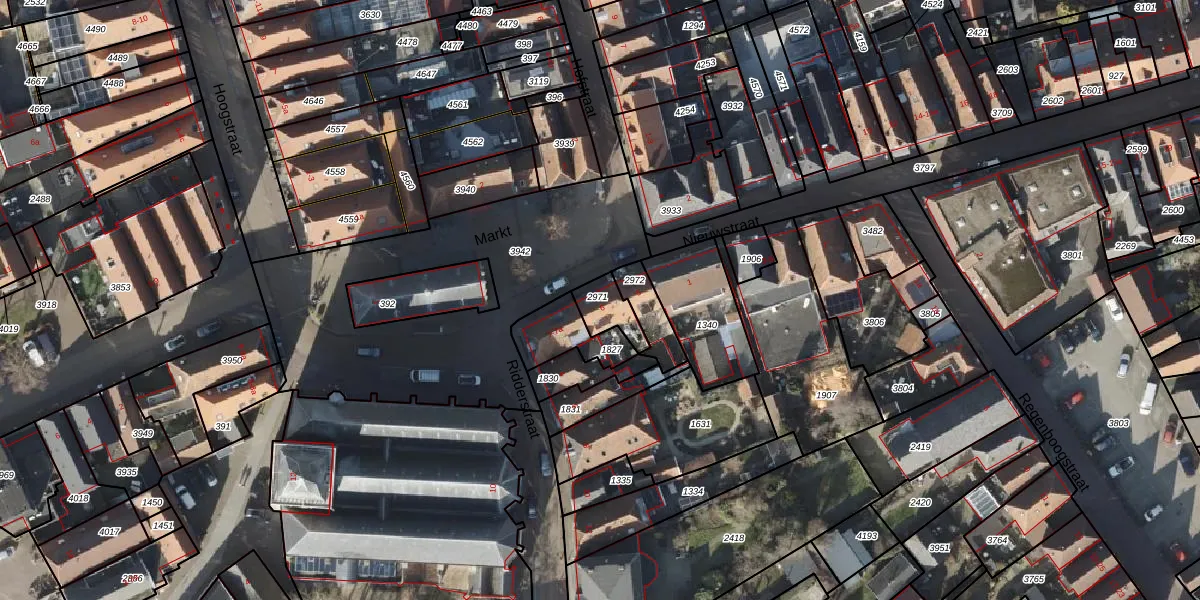 Het perceel waarop Markt 6 staat heeft een oppervlakte van 77 m². Dit is een klein perceel. De perceeloppervlakte wordt geregistreerd door het Kadaster. Gedetailleerde informatie over de maten van dit perceel kunt u vinden in het rapport Kadastrale kaart met maatvoering van Markt 6.