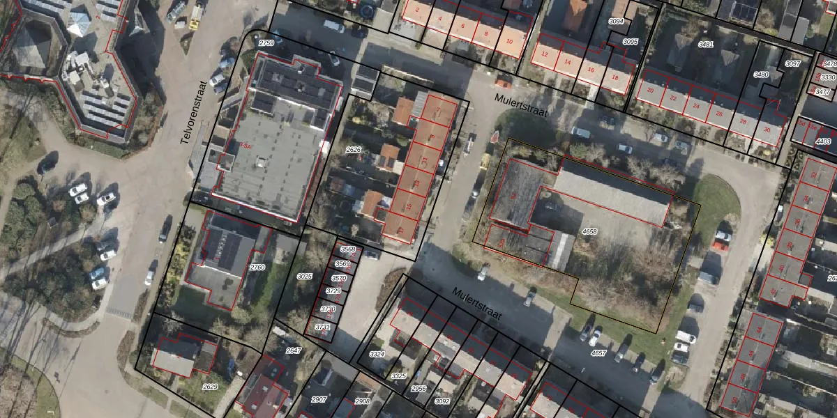 Het perceel waarop Mulertstraat 15 staat heeft een oppervlakte van 1080 m². Dit is een zeer groot perceel. De perceeloppervlakte wordt geregistreerd door het Kadaster. Gedetailleerde informatie over de maten van dit perceel kunt u vinden in het rapport Kadastrale kaart met maatvoering van Mulertstraat 15.