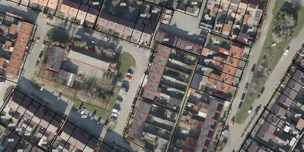 Het perceel waarop Mulertstraat 38 staat heeft een oppervlakte van 2060 m². Dit is een zeer groot perceel. De perceeloppervlakte wordt geregistreerd door het Kadaster. Gedetailleerde informatie over de maten van dit perceel kunt u vinden in het rapport Kadastrale kaart met maatvoering van Mulertstraat 38.