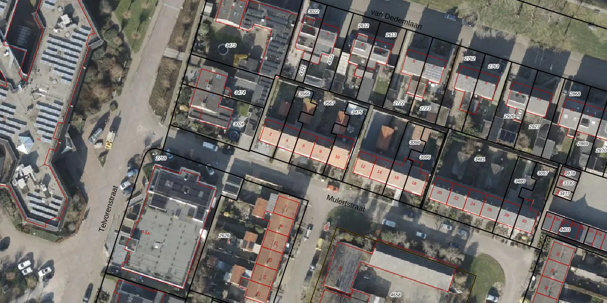 Het perceel waarop Mulertstraat 6 staat heeft een oppervlakte van 951 m². Dit is een groot perceel. De perceeloppervlakte wordt geregistreerd door het Kadaster. Gedetailleerde informatie over de maten van dit perceel kunt u vinden in het rapport Kadastrale kaart met maatvoering van Mulertstraat 6.