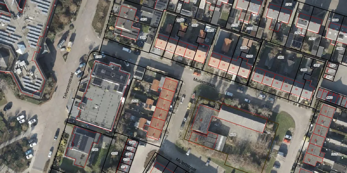 Het perceel waarop Mulertstraat 7 staat heeft een oppervlakte van 1080 m². Dit is een zeer groot perceel. De perceeloppervlakte wordt geregistreerd door het Kadaster. Gedetailleerde informatie over de maten van dit perceel kunt u vinden in het rapport Kadastrale kaart met maatvoering van Mulertstraat 7.