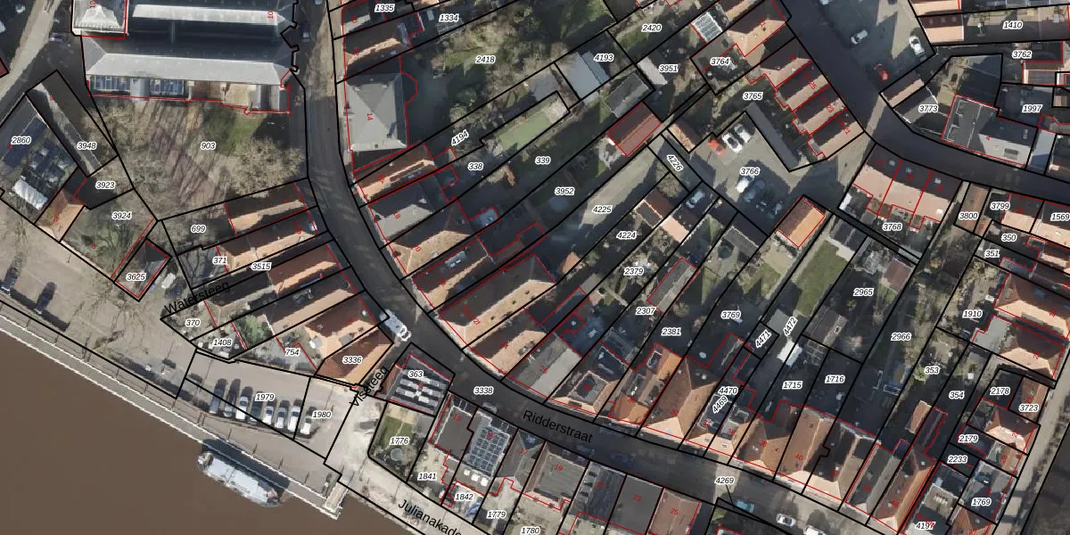 Het perceel waarop Ridderstraat 22-f staat heeft een oppervlakte van 464 m². Dit is een groot perceel. De perceeloppervlakte wordt geregistreerd door het Kadaster. Gedetailleerde informatie over de maten van dit perceel kunt u vinden in het rapport Kadastrale kaart met maatvoering van Ridderstraat 22-f.