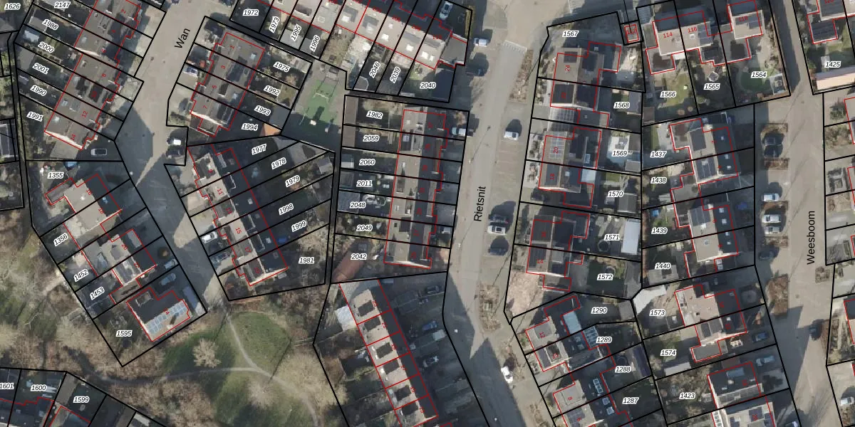 Gebruik de zoekbalk of klik op een perceel voor informatie over de adressen binnen dit perceel.