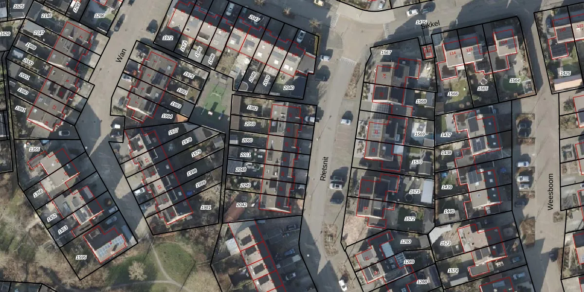 Gebruik de zoekbalk of klik op een perceel voor informatie over de adressen binnen dit perceel.