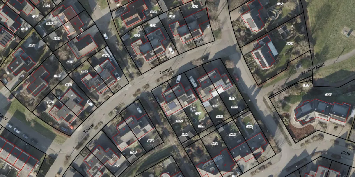 Het perceel waarop Teugel 16 staat heeft een oppervlakte van 369 m². Dit is een groot perceel. De perceeloppervlakte wordt geregistreerd door het Kadaster. Gedetailleerde informatie over de maten van dit perceel kunt u vinden in het rapport Kadastrale kaart met maatvoering van Teugel 16.