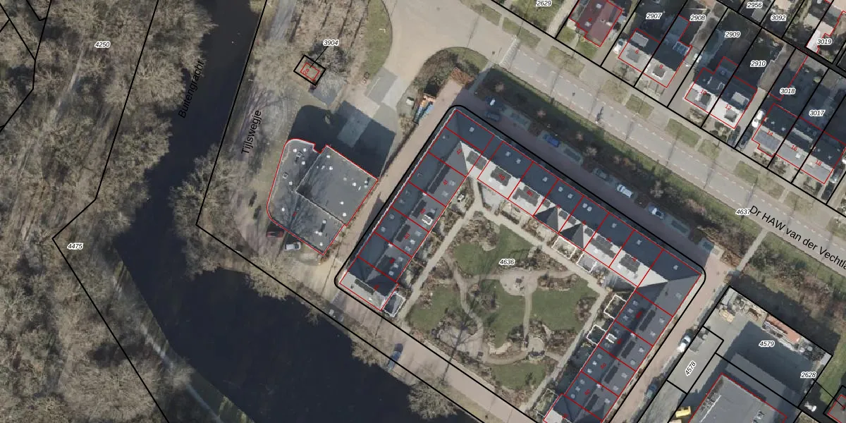 Het perceel waarop Tijlswegje 4-e staat heeft een oppervlakte van 3781 m². Dit is een zeer groot perceel. De perceeloppervlakte wordt geregistreerd door het Kadaster. Gedetailleerde informatie over de maten van dit perceel kunt u vinden in het rapport Kadastrale kaart met maatvoering van Tijlswegje 4-e.
