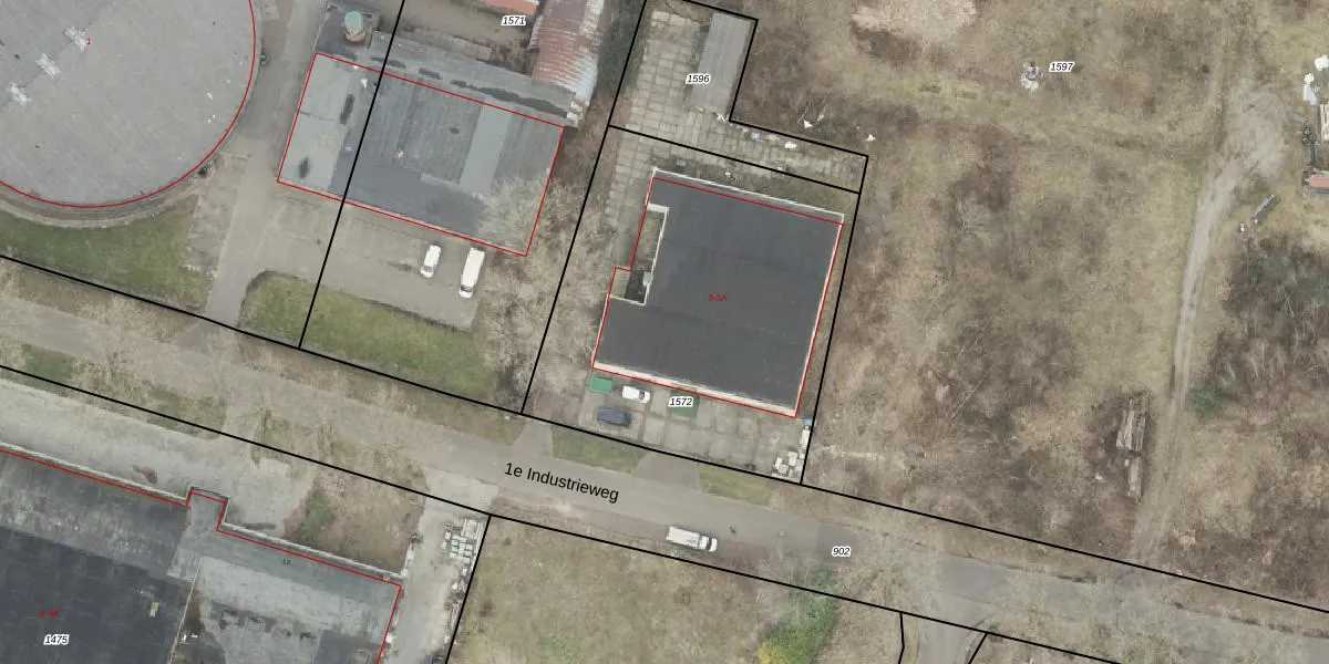 Het perceel waarop 1e Industrieweg 3-A staat heeft een oppervlakte van 1875 m². Dit is een zeer groot perceel. De perceeloppervlakte wordt geregistreerd door het Kadaster. Gedetailleerde informatie over de maten van dit perceel kunt u vinden in het rapport Kadastrale kaart met maatvoering van 1e Industrieweg 3-A.