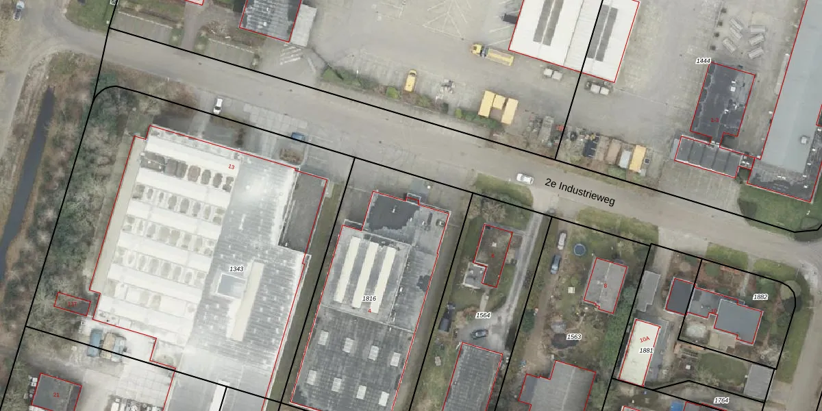 Het perceel waarop 2e Industrieweg 4 staat heeft een oppervlakte van 1906 m². Dit is een zeer groot perceel. De perceeloppervlakte wordt geregistreerd door het Kadaster. Gedetailleerde informatie over de maten van dit perceel kunt u vinden in het rapport Kadastrale kaart met maatvoering van 2e Industrieweg 4.