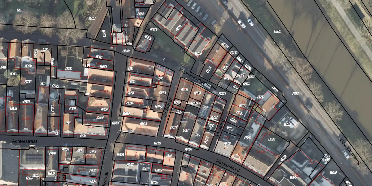 Het perceel waarop 2e Steeg 2-A staat heeft een oppervlakte van 83 m². Dit is een klein perceel. De perceeloppervlakte wordt geregistreerd door het Kadaster. Gedetailleerde informatie over de maten van dit perceel kunt u vinden in het rapport Kadastrale kaart met maatvoering van 2e Steeg 2-A.