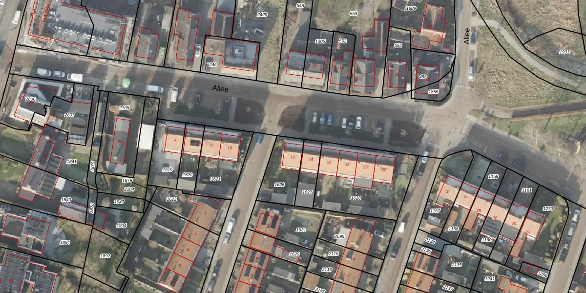 Het perceel waarop Allee 12 staat heeft een oppervlakte van 260 m². Dit is een middelgroot perceel. De perceeloppervlakte wordt geregistreerd door het Kadaster. Gedetailleerde informatie over de maten van dit perceel kunt u vinden in het rapport Kadastrale kaart met maatvoering van Allee 12.