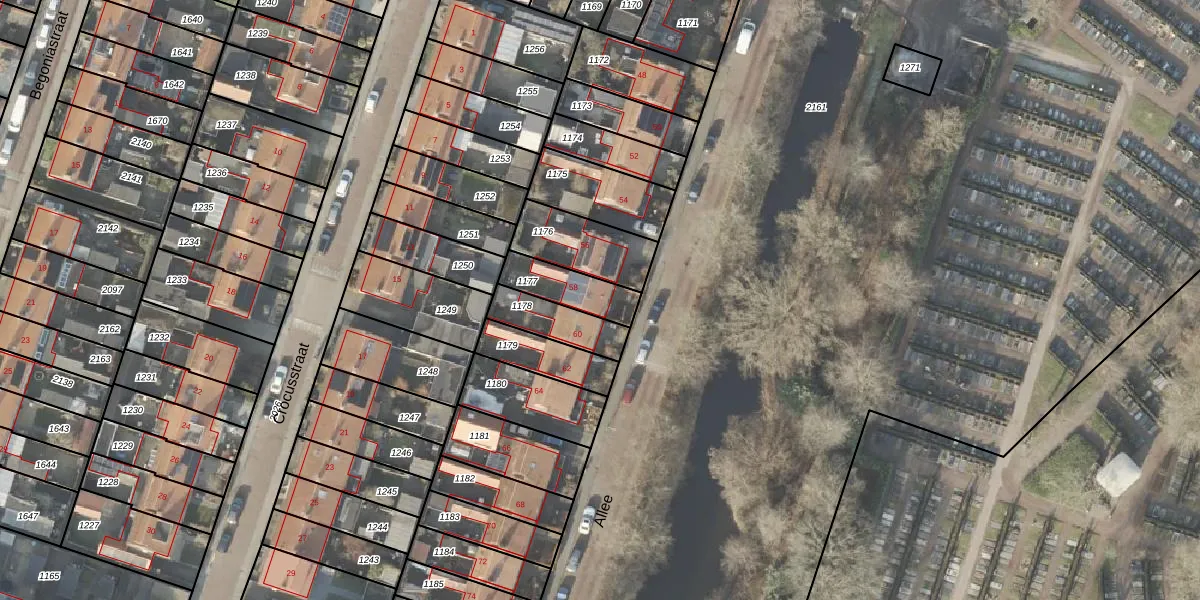 Het perceel waarop Allee 58 staat heeft een oppervlakte van 141 m². Dit is een middelgroot perceel. De perceeloppervlakte wordt geregistreerd door het Kadaster. Gedetailleerde informatie over de maten van dit perceel kunt u vinden in het rapport Kadastrale kaart met maatvoering van Allee 58.