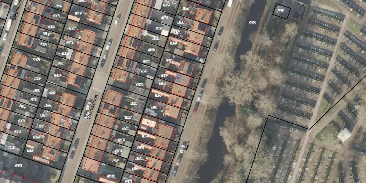 Het perceel waarop Allee 60 staat heeft een oppervlakte van 142 m². Dit is een middelgroot perceel. De perceeloppervlakte wordt geregistreerd door het Kadaster. Gedetailleerde informatie over de maten van dit perceel kunt u vinden in het rapport Kadastrale kaart met maatvoering van Allee 60.