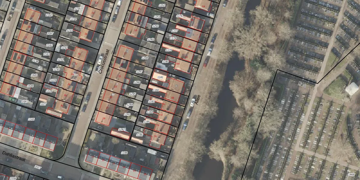 Het perceel waarop Allee 66 staat heeft een oppervlakte van 208 m². Dit is een middelgroot perceel. De perceeloppervlakte wordt geregistreerd door het Kadaster. Gedetailleerde informatie over de maten van dit perceel kunt u vinden in het rapport Kadastrale kaart met maatvoering van Allee 66.