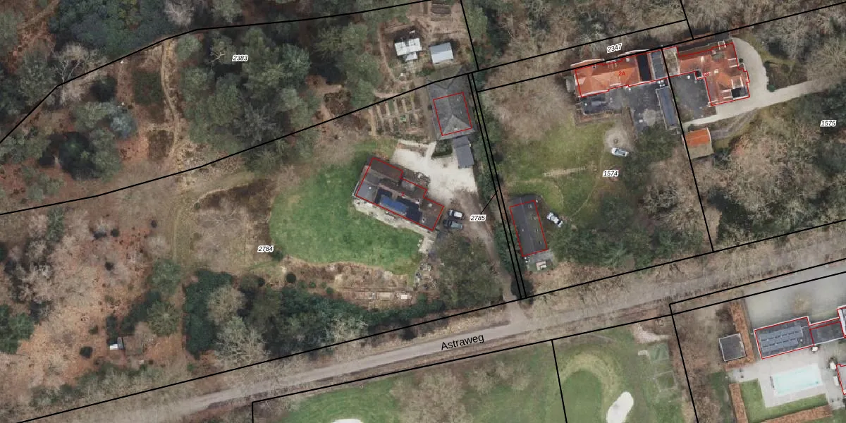 Het perceel waarop Astraweg 2 staat heeft een oppervlakte van 6634 m². Dit is een zeer groot perceel. De perceeloppervlakte wordt geregistreerd door het Kadaster. Gedetailleerde informatie over de maten van dit perceel kunt u vinden in het rapport Kadastrale kaart met maatvoering van Astraweg 2.