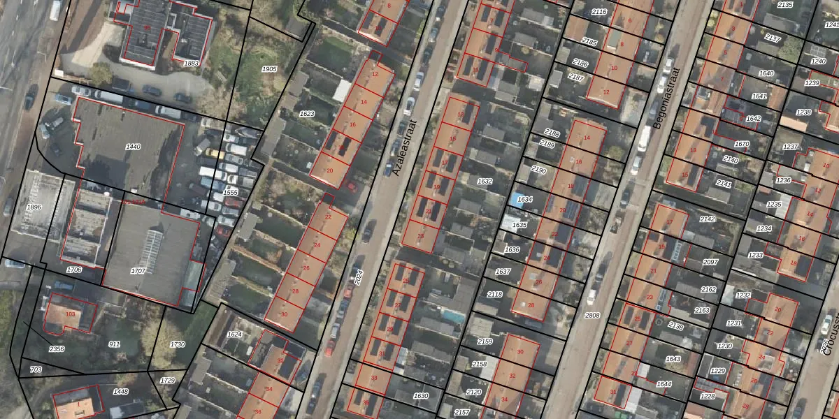 Het perceel waarop Azaleastraat 21 staat heeft een oppervlakte van 2285 m². Dit is een zeer groot perceel. De perceeloppervlakte wordt geregistreerd door het Kadaster. Gedetailleerde informatie over de maten van dit perceel kunt u vinden in het rapport Kadastrale kaart met maatvoering van Azaleastraat 21.