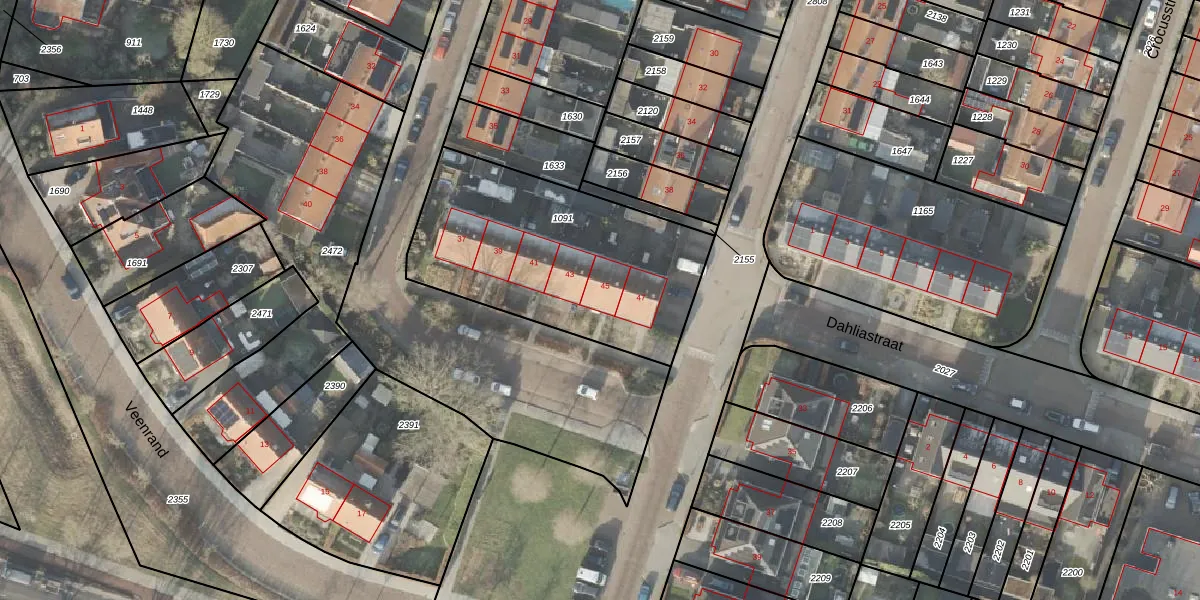 Het perceel waarop Azaleastraat 45 staat heeft een oppervlakte van 1088 m². Dit is een zeer groot perceel. De perceeloppervlakte wordt geregistreerd door het Kadaster. Gedetailleerde informatie over de maten van dit perceel kunt u vinden in het rapport Kadastrale kaart met maatvoering van Azaleastraat 45.