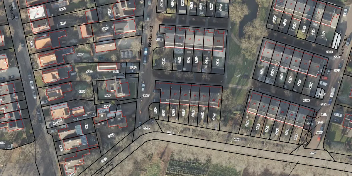 Gebruik de zoekbalk of klik op een perceel voor informatie over de adressen binnen dit perceel.