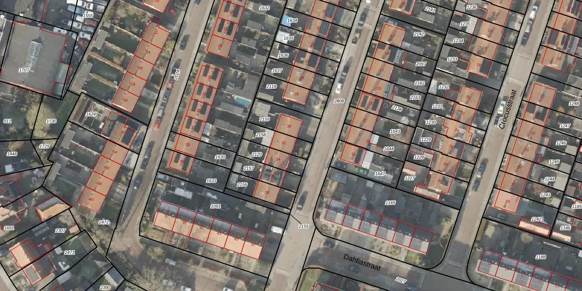 Gebruik de zoekbalk of klik op een perceel voor informatie over de adressen binnen dit perceel.