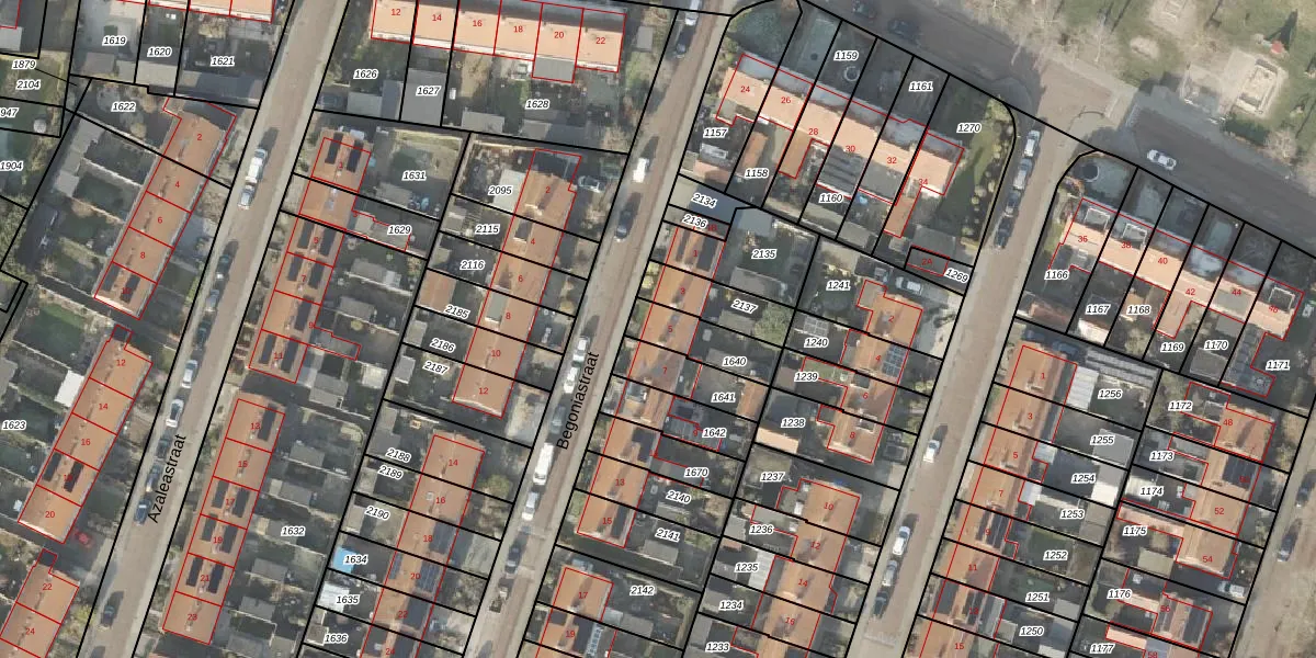 Gebruik de zoekbalk of klik op een perceel voor informatie over de adressen binnen dit perceel.
