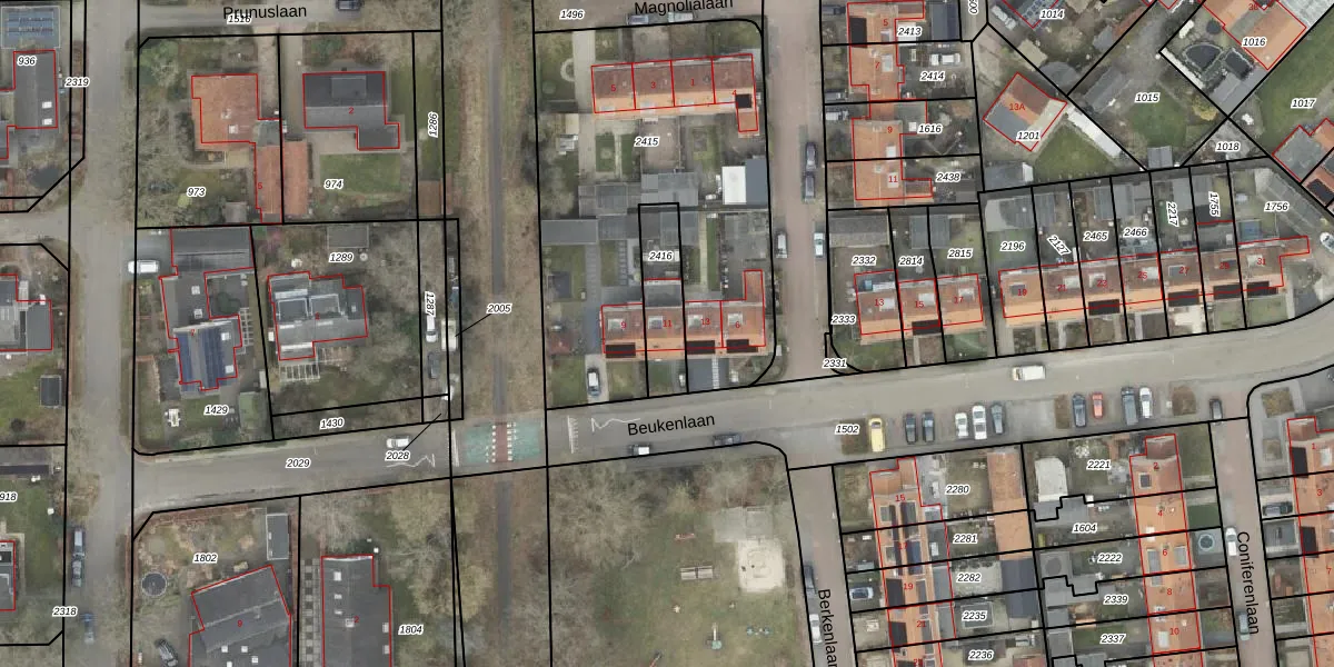Beukenlaan 11 is gelegen op kadastraal perceel HTM00B2416. Deze kadastrale aanduiding is uniek en wordt gebruikt door het Kadaster om eigendomsrechten en andere zakelijke rechten vast te leggen. Het perceel maakt onderdeel uit van de kadastrale gemeente Hattem.