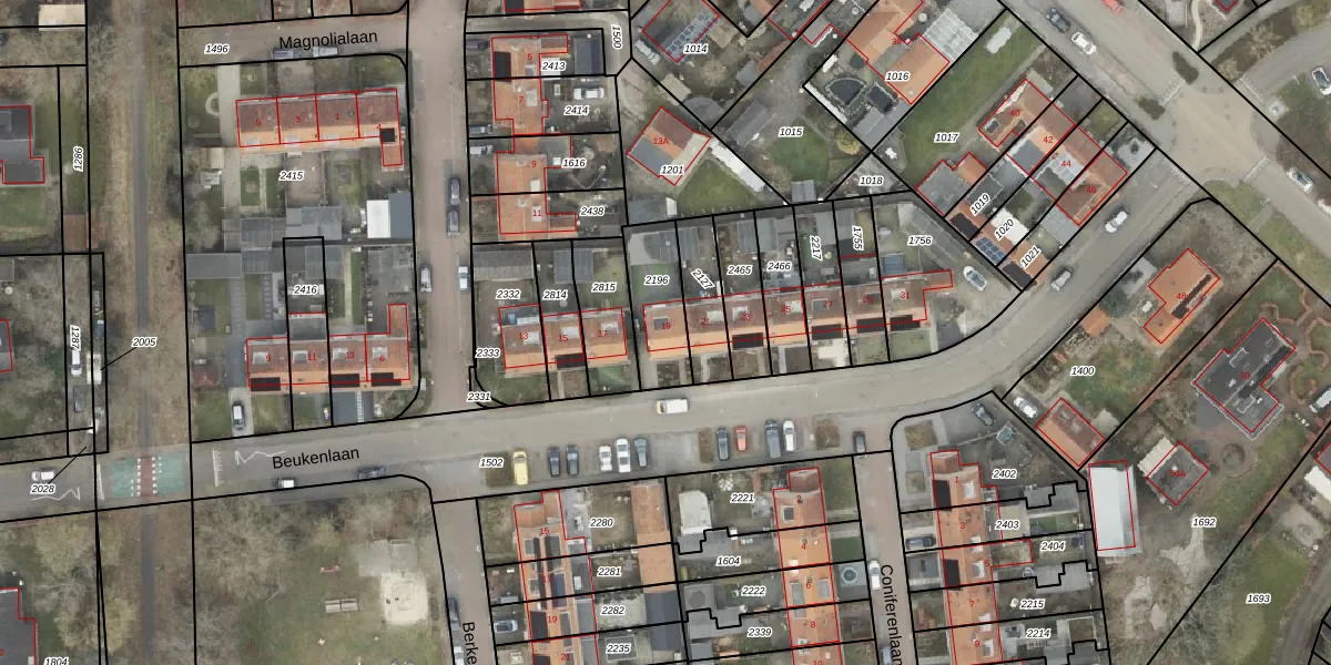 Gebruik de zoekbalk of klik op een perceel voor informatie over de adressen binnen dit perceel.