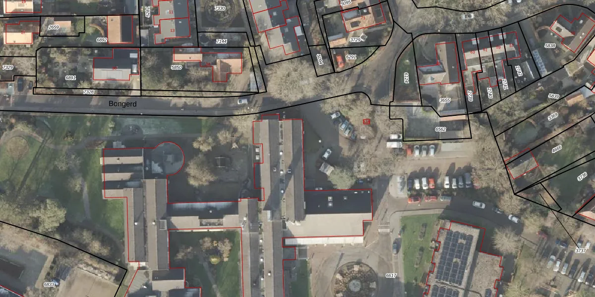 Het perceel waarop Bongerd 32-132 staat heeft een oppervlakte van 2,2 ha. Dit is een zeer groot perceel. De perceeloppervlakte wordt geregistreerd door het Kadaster. Gedetailleerde informatie over de maten van dit perceel kunt u vinden in het rapport Kadastrale kaart met maatvoering van Bongerd 32-132.