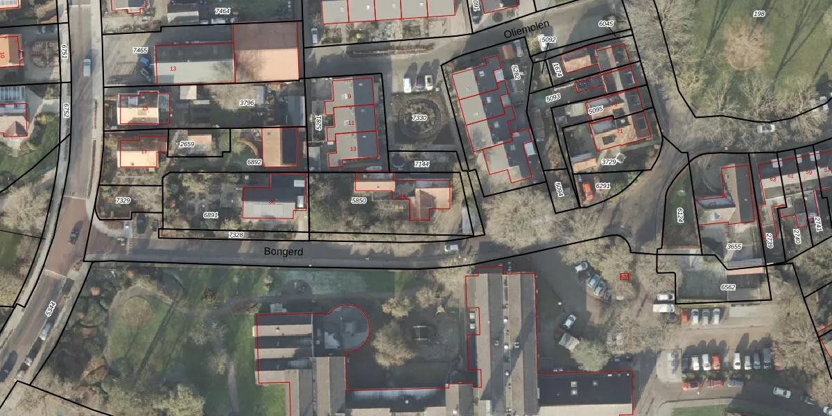 Het perceel waarop Bongerd 34 staat heeft een oppervlakte van 575 m². Dit is een groot perceel. De perceeloppervlakte wordt geregistreerd door het Kadaster. Gedetailleerde informatie over de maten van dit perceel kunt u vinden in het rapport Kadastrale kaart met maatvoering van Bongerd 34.