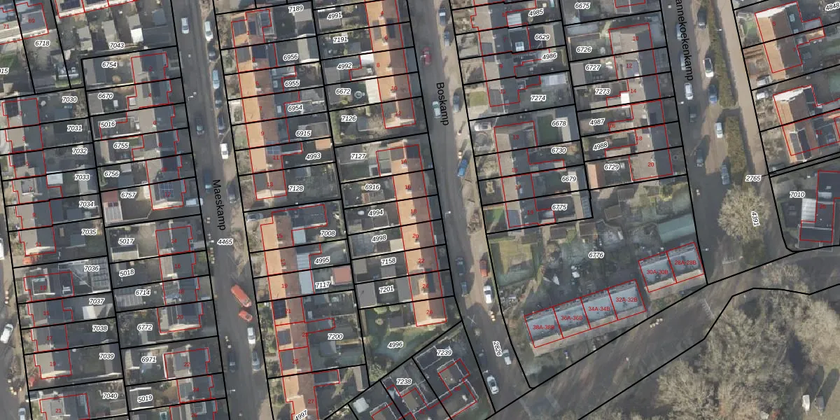 Gebruik de zoekbalk of klik op een perceel voor informatie over de adressen binnen dit perceel.
