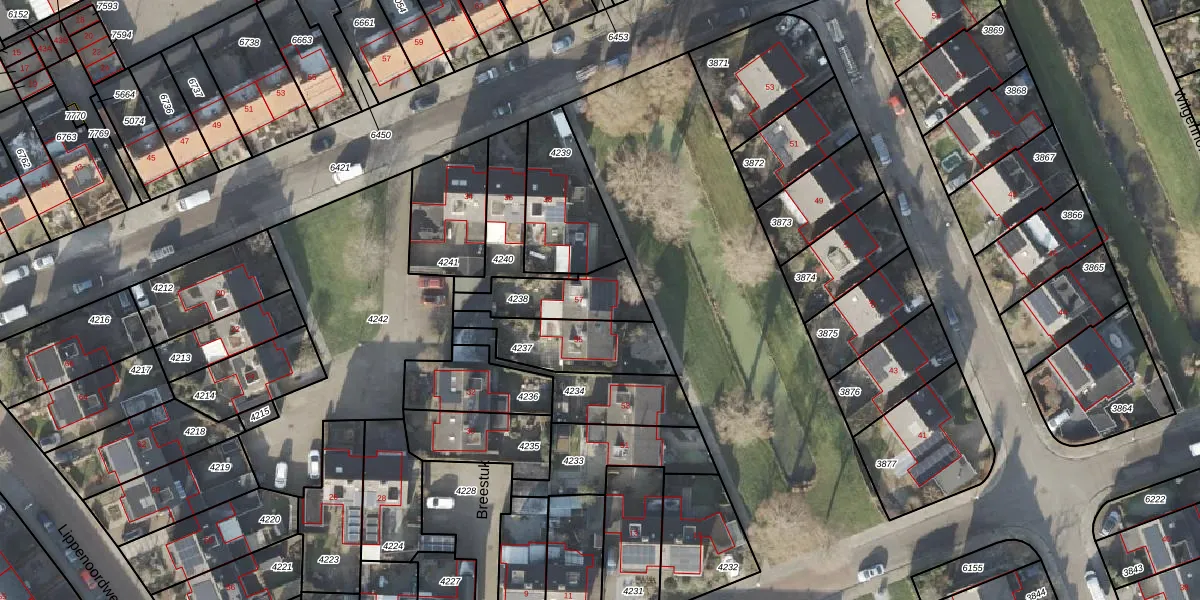 Het perceel waarop Breestuk 57 staat heeft een oppervlakte van 208 m². Dit is een middelgroot perceel. De perceeloppervlakte wordt geregistreerd door het Kadaster. Gedetailleerde informatie over de maten van dit perceel kunt u vinden in het rapport Kadastrale kaart met maatvoering van Breestuk 57.