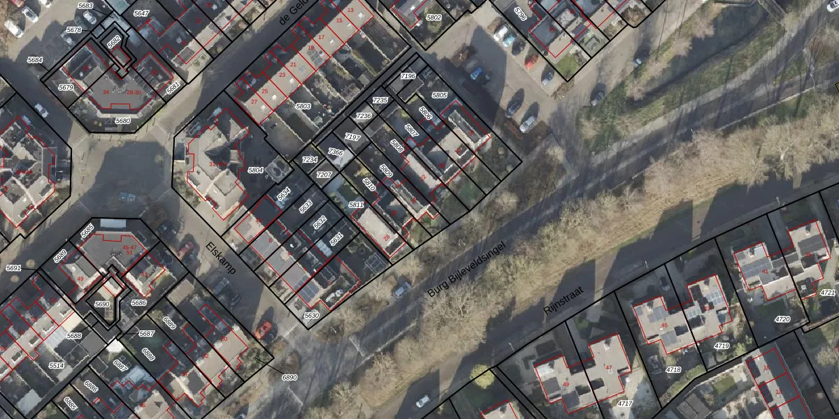 Het perceel waarop Burg Bijleveldsingel 24 staat heeft een oppervlakte van 144 m². Dit is een middelgroot perceel. De perceeloppervlakte wordt geregistreerd door het Kadaster. Gedetailleerde informatie over de maten van dit perceel kunt u vinden in het rapport Kadastrale kaart met maatvoering van Burg Bijleveldsingel 24.
