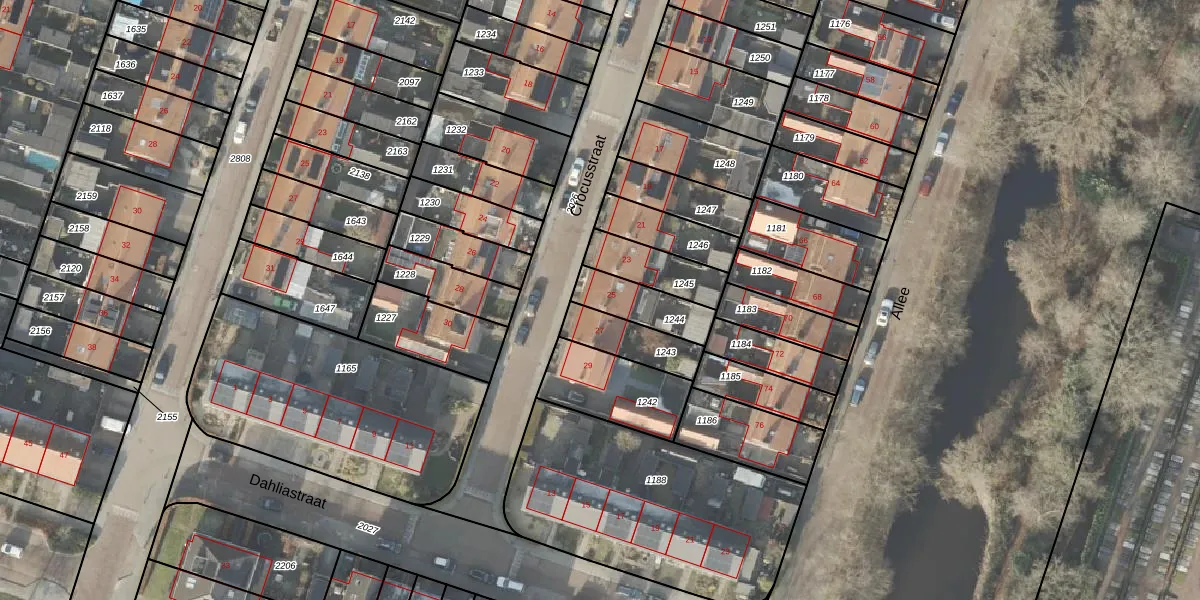Het perceel waarop Crocusstraat 25 staat heeft een oppervlakte van 150 m². Dit is een middelgroot perceel. De perceeloppervlakte wordt geregistreerd door het Kadaster. Gedetailleerde informatie over de maten van dit perceel kunt u vinden in het rapport Kadastrale kaart met maatvoering van Crocusstraat 25.
