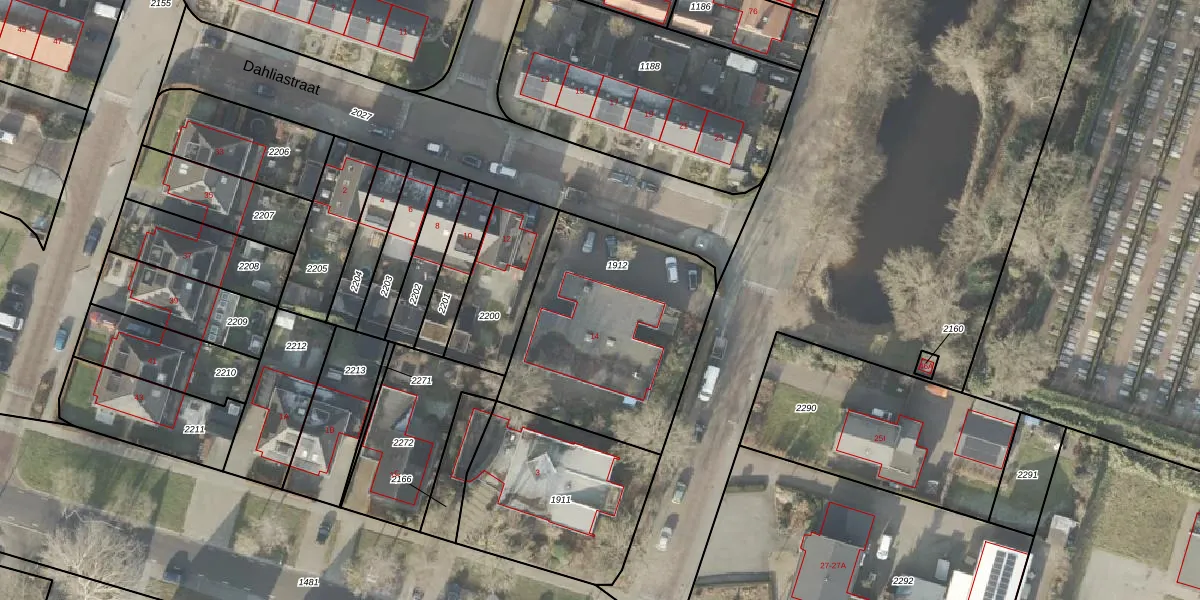 Het perceel waarop Dahliastraat 14 staat heeft een oppervlakte van 970 m². Dit is een groot perceel. De perceeloppervlakte wordt geregistreerd door het Kadaster. Gedetailleerde informatie over de maten van dit perceel kunt u vinden in het rapport Kadastrale kaart met maatvoering van Dahliastraat 14.