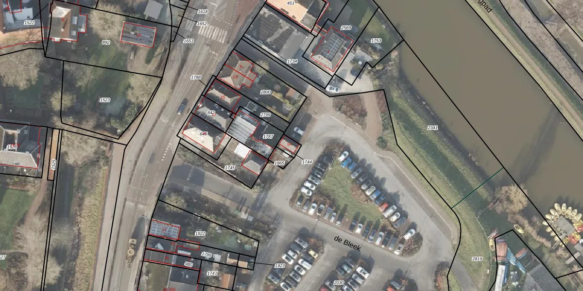 Gebruik de zoekbalk of klik op een perceel voor informatie over de adressen binnen dit perceel.
