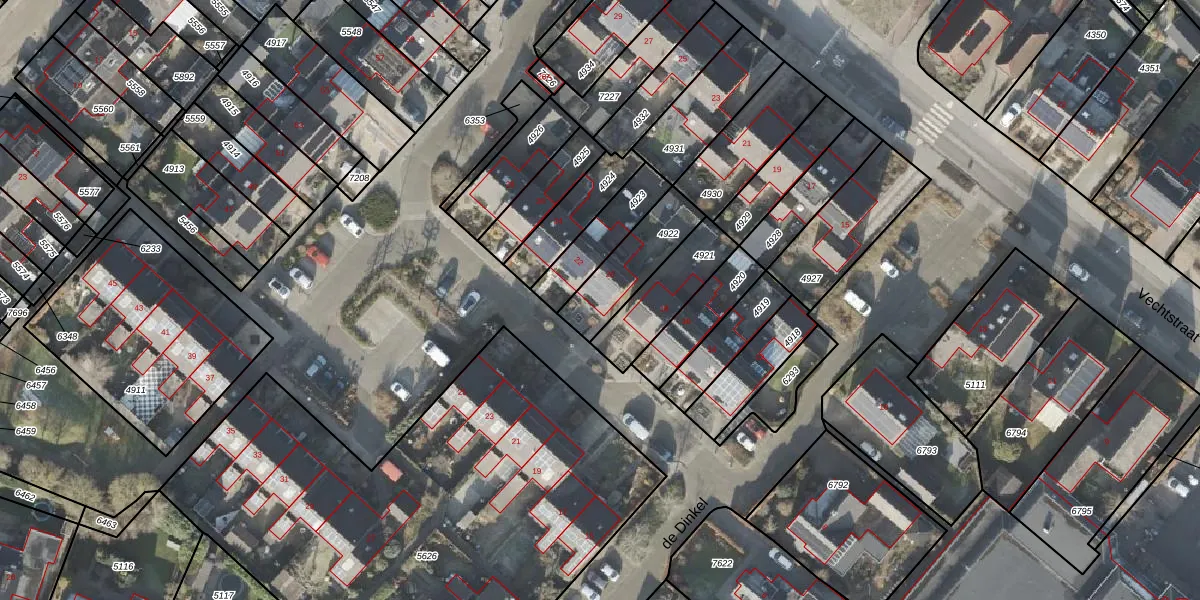 Het perceel waarop de Dinkel 20 staat heeft een oppervlakte van 213 m². Dit is een middelgroot perceel. De perceeloppervlakte wordt geregistreerd door het Kadaster. Gedetailleerde informatie over de maten van dit perceel kunt u vinden in het rapport Kadastrale kaart met maatvoering van de Dinkel 20.