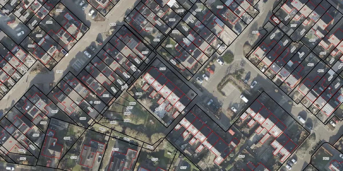 Het perceel waarop de Dinkel 41 staat heeft een oppervlakte van 852 m². Dit is een groot perceel. De perceeloppervlakte wordt geregistreerd door het Kadaster. Gedetailleerde informatie over de maten van dit perceel kunt u vinden in het rapport Kadastrale kaart met maatvoering van de Dinkel 41.