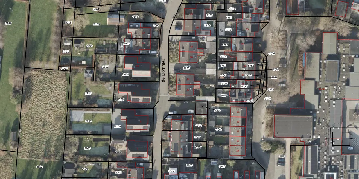 Het perceel waarop de Dommel 12 staat heeft een oppervlakte van 970 m². Dit is een groot perceel. De perceeloppervlakte wordt geregistreerd door het Kadaster. Gedetailleerde informatie over de maten van dit perceel kunt u vinden in het rapport Kadastrale kaart met maatvoering van de Dommel 12.