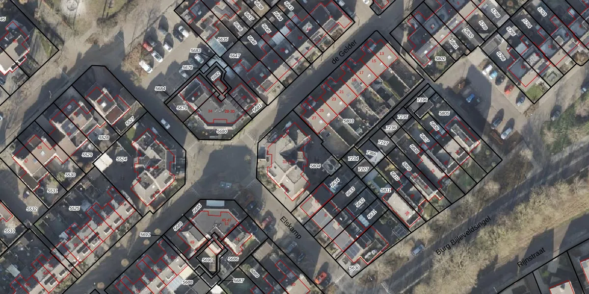 Het perceel waarop de Gelder 33-A staat heeft een oppervlakte van 565 m². Dit is een groot perceel. De perceeloppervlakte wordt geregistreerd door het Kadaster. Gedetailleerde informatie over de maten van dit perceel kunt u vinden in het rapport Kadastrale kaart met maatvoering van de Gelder 33-A.